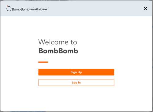 - Click the BombBomb icon again and, when prompted, sign up for or log in to BombBomb. (For the integration to work, you must have a free trial or paid account. You can learn more about BombBomb's pricing here.)