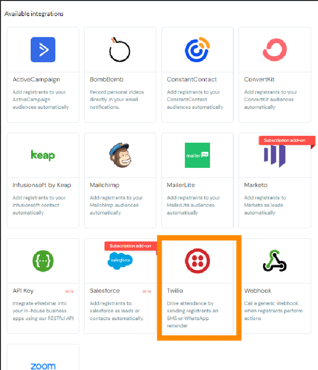 Set up our Twilio integration and send notifications to registrants as WhatsApp messages.