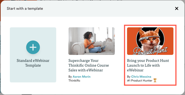 When you go to create your eWebinar, choose the Product Hunt maker template.