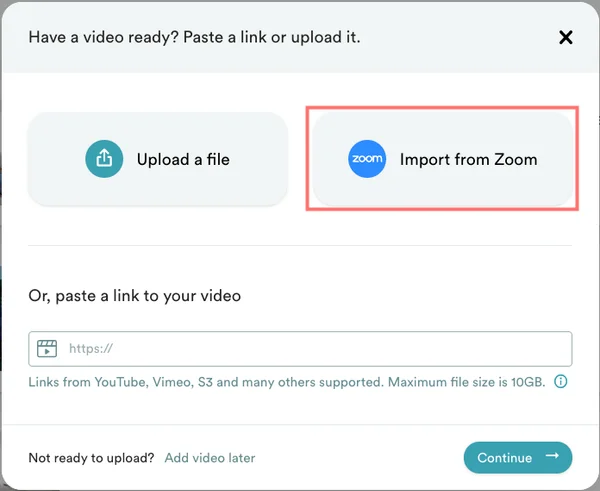 To import a cloud recording from Zoom: