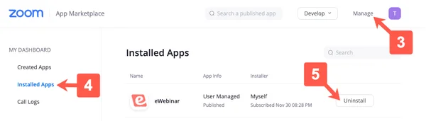 Uninstalling eWebinar from your Zoom account is simple.